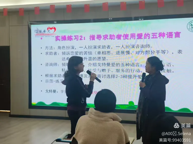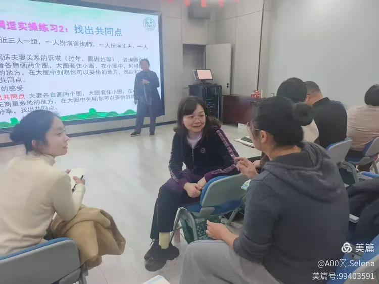 下午《新婚磨合、夫妻关系调适技术》课程,聚焦夫妻沟通模式与冲突解决策略,通过实操演练提升学员调适夫妻关系的专业能力。