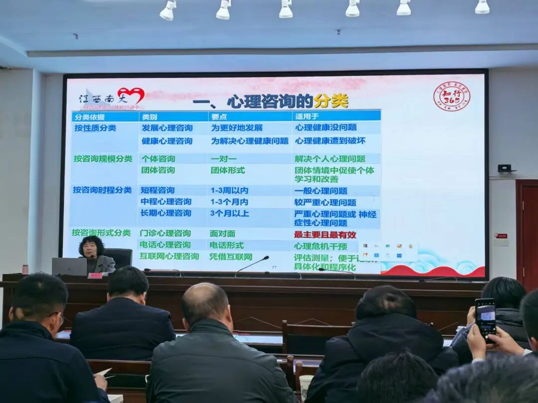 黄建华在讲话时指出,举办本次培训班,旨在帮助大家系统学习心理健康知识和家庭教育方法,一方面,提升自身压力调节和家庭教育水平,以健康心态和优良家风干事创业;另一方面,发挥示范引领作用,带动全社会重视心理健康、注重家庭教育,为我县高质量发展保驾护航。希望全体学员珍惜培训机会,认真学习、刻苦钻研,真正做到学有所思、学有所悟、学有所获。要严守学习纪律,确保参训实效;要坚持学思践悟,提升履职能力;要筑牢纪律底线,树立良好形象;要强化担当作为,推动工作落地。要主动关心支持全县社会心理服务工作,用心破解工作中的难点堵点问题,推动我县社会心理服务体系建设提质增效,共同为谱写中国式现代化上犹篇章贡献新的更大力量。