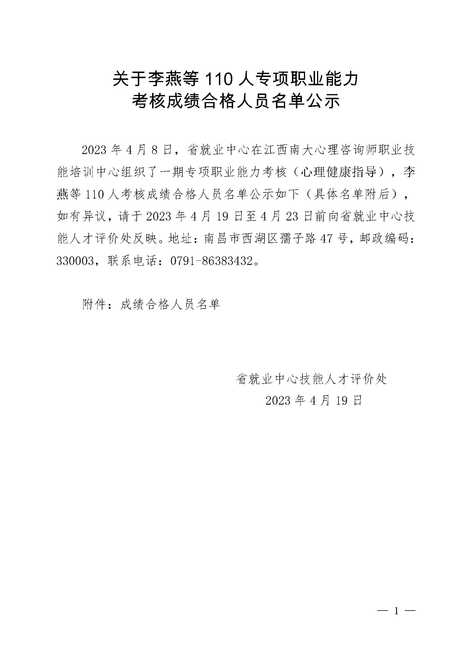 关于李燕等110人专项职业能力考核成绩合格人员名单公示